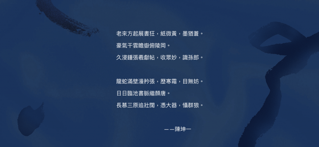 繼2018年歷史博物館國家畫廊大型書法個展之後,2020年陳坤一再度應邀於「長歌藝術現場」推出書印作品暨新書發表,題為「一時豪興」。